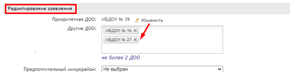 Руководство для родителей по изменению ДОО в заявлении.