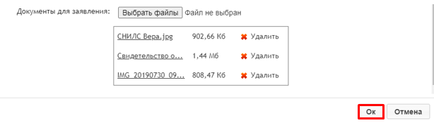 После внесения изменений в заявление нажмите кнопку «ОК».