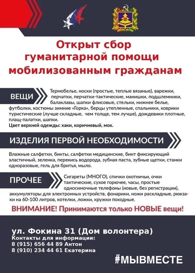 Открыт сбор гуманитарной помощи мобилизованным гражданам